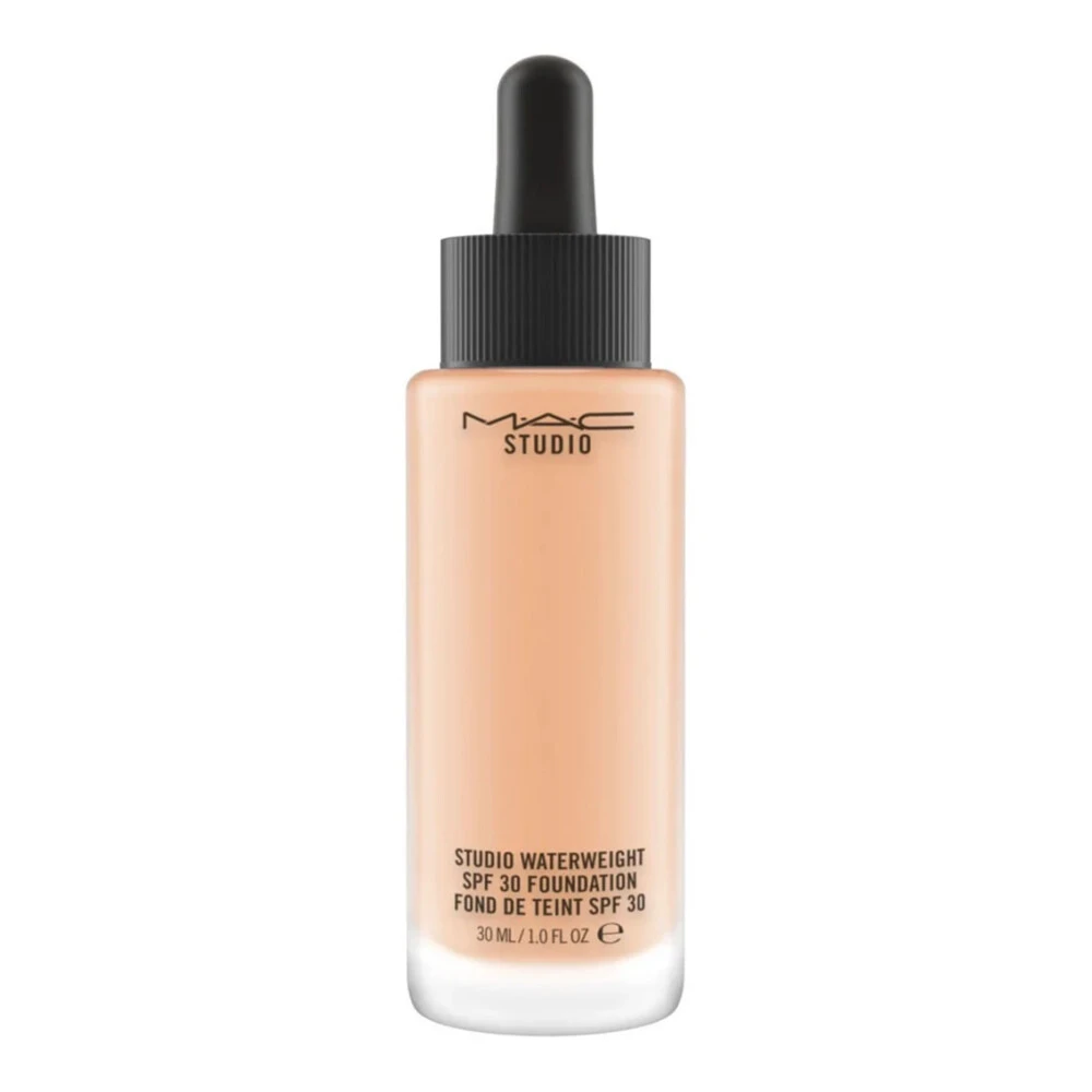 Mac Studio Waterweight Foundation SPF30 30 mlZoek jij foundation met SPF30? De Studio Waterweight SPF30 van MAC is een foundation die een vochtfusiecomplex bevat om de huid onmiddellijk te hydrateren. Daarnaast voedt het de huid tegelijk. De toevoeging van SPF30 in de formule zorgt voor bescherming tegen de zon en is tevens geschikt voor elk huidtype. De foundation houdt de hele dag! De dekking is transparant tot medium en kleurvast.Een foundation die de huid hydrateert (vochtfusiecomplex)Voedt